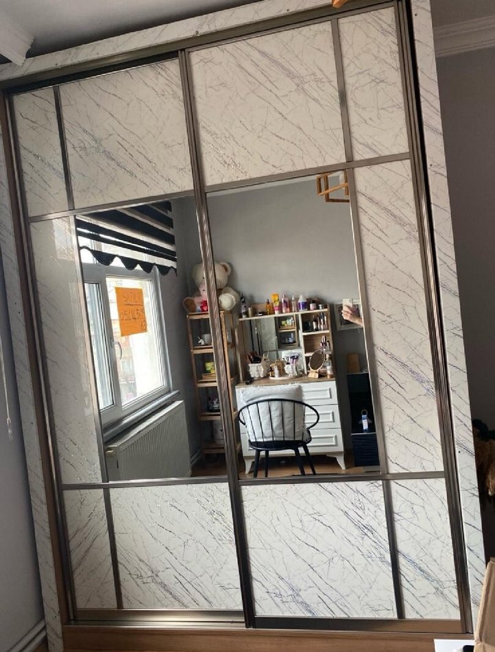 Aynalı 2 kapılı portmanto, uzunluk 2.47cm genişlik 183cm eni 64cm