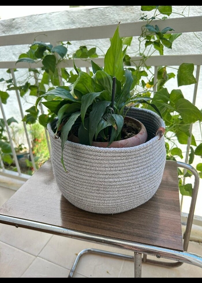 tamamen el dikimidir yapıştırma değildir gri renklidir handmade yazısı vardır tabanı 20 cm ağız genişliği 23 cm sepet yüksekligi 15 cmdir