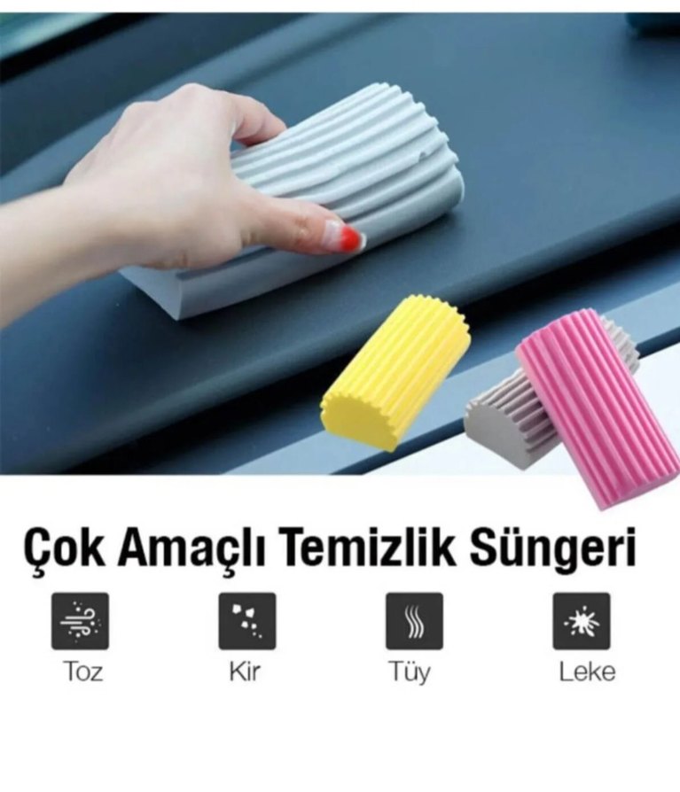 Leke, kir, toz ve tüyleri temizlemek için çok amaçlı pastel renkli temizlik süngeri. Farklı temizlik işlerinde kullanılabilir.