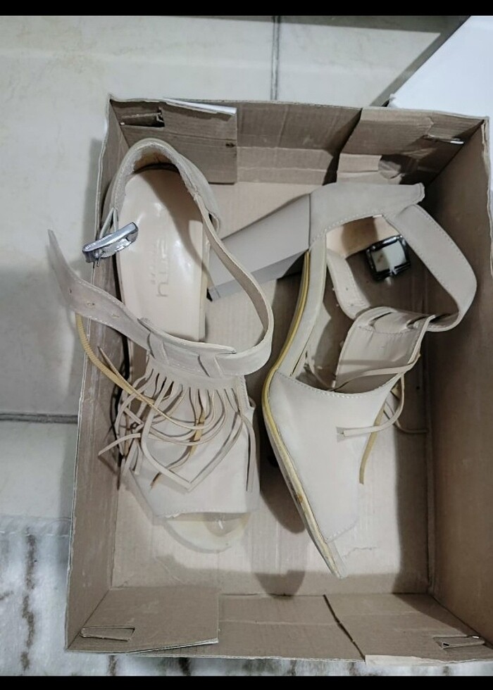 Çok az kullanılmış vizyon renginde yazlık topuklu ayakkabı