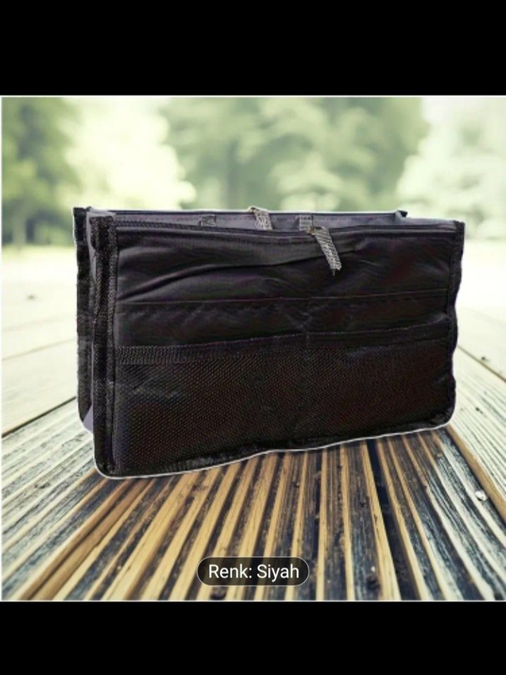 Fermuarlı kapama özelliğine sahip siyah makyaj çantası, sentetik kumaştan üretilmiştir. Minimalist, desensiz tasarımıyla günlük kullanıma uygundur.