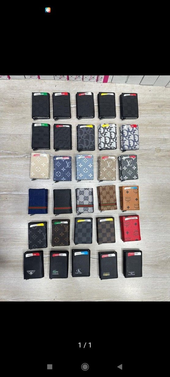 Farklı desen ve renklerde, sokak modasına uygun erkek cüzdanları. Çoklu desenler ve tasarımcı esintili modeller içerir.
