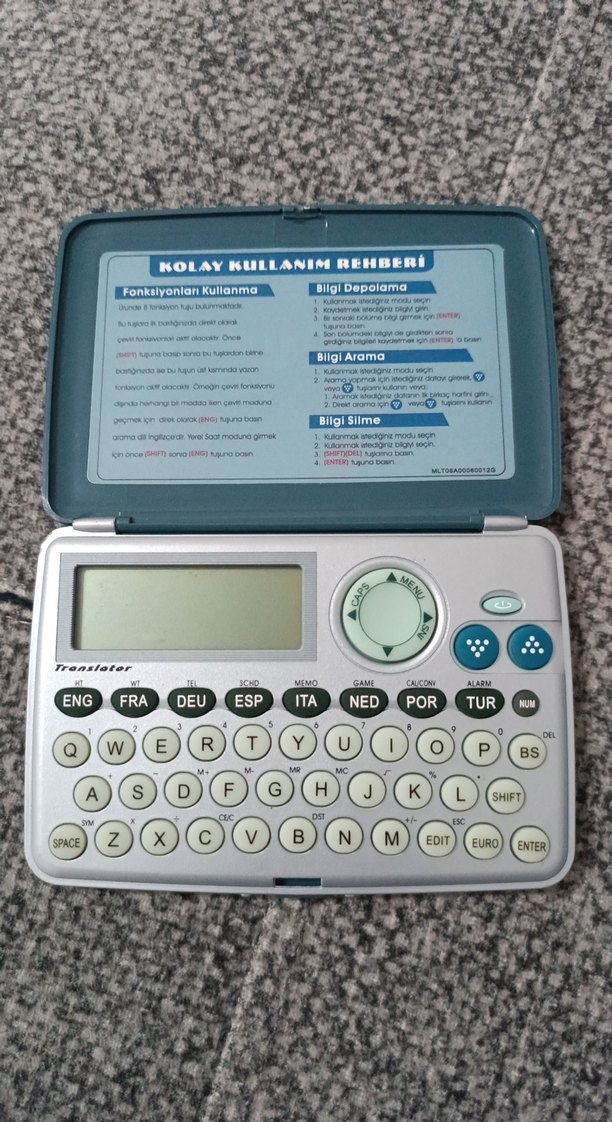 Çok dilli elektronik sözlük, tam QWERTY klavye ve Türkçe dahil birçok dil desteği sunar. Kolay kullanımlı ekran ve gezinme tuşları bulunur.