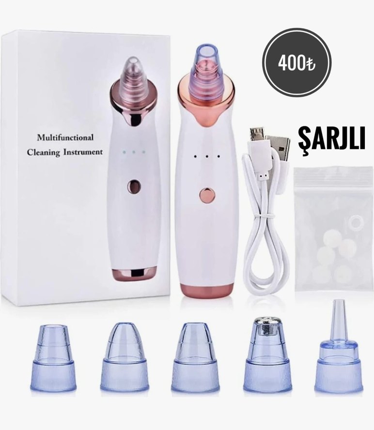 Beyaz renkli, beş farklı başlıkla çok fonksiyonlu yüz temizleme cihazıdır. USB kablo ve pamuk pedler ile birlikte gelir, derin temizlik sağlar.