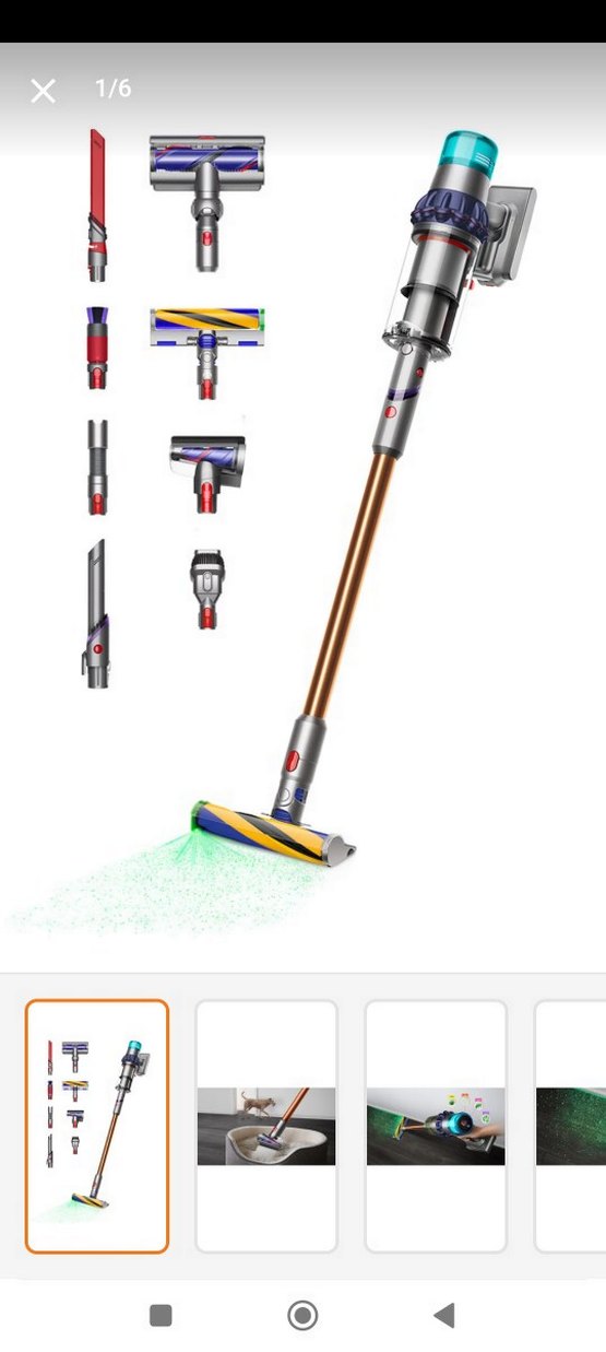 Çoklu başlıklarla donatılmış, kablosuz ve renkli tasarıma sahip elektrikli süpürge. Motorlu fırça başlığı LED ışıklarla desteklenmiştir.