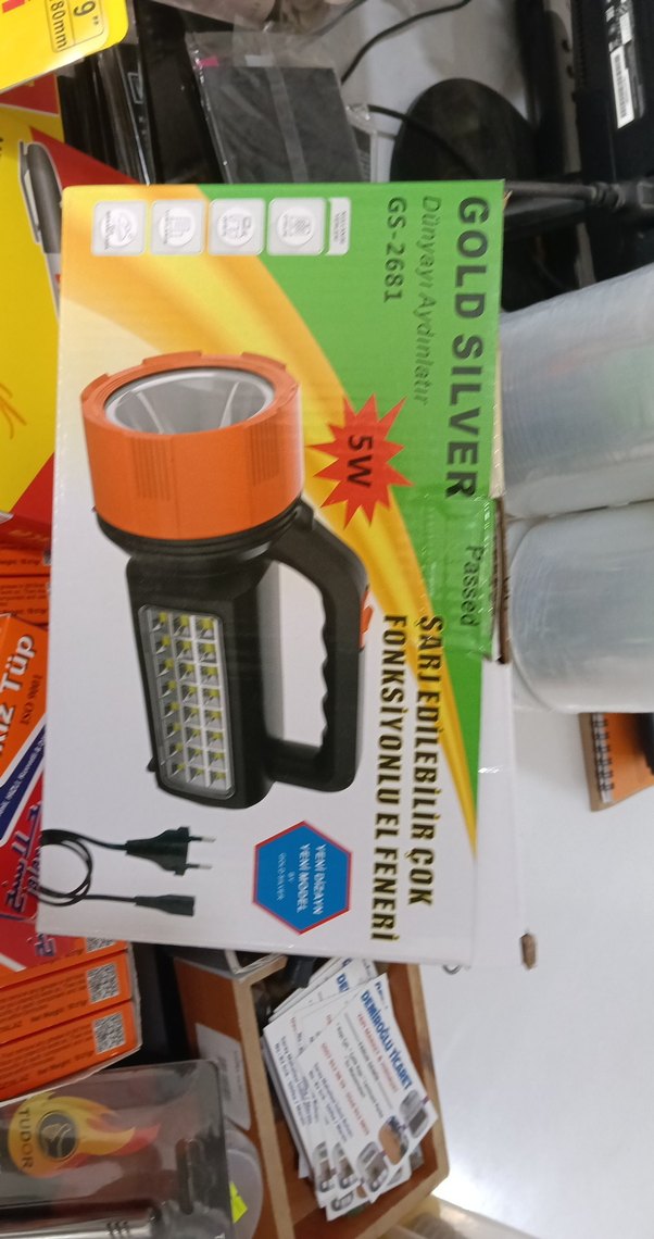 5W gücünde, çok fonksiyonlu turuncu el feneri, kullanımı kolay saplı ve şarj kablosu ile birlikte gelir. GOLD SILVER GS-2681 modelidir.