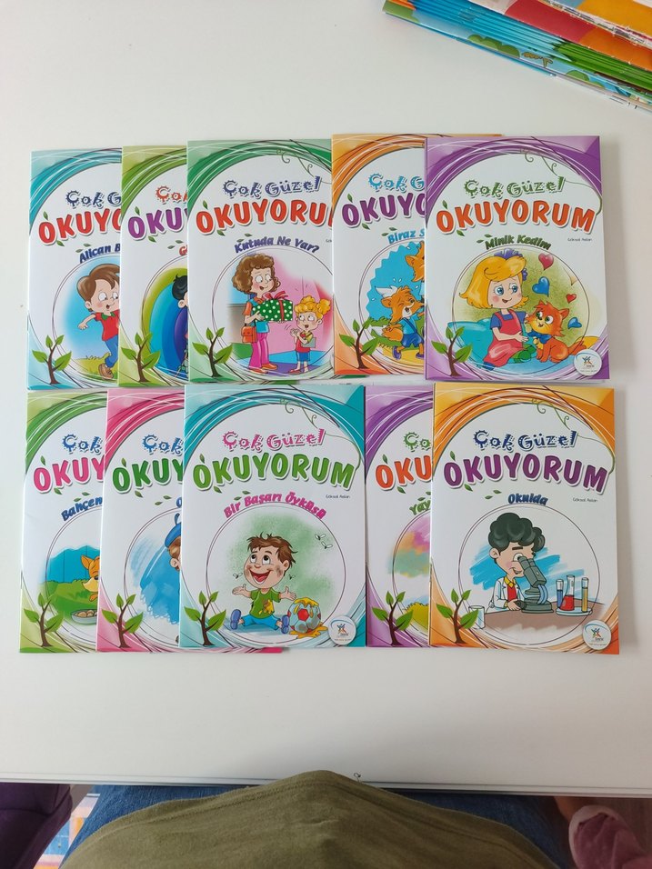Renkli kapaklara sahip, erken okuma için eğlenceli hikayeler içeren "Çok Güzel Okuyorum" çocuk kitap seti.