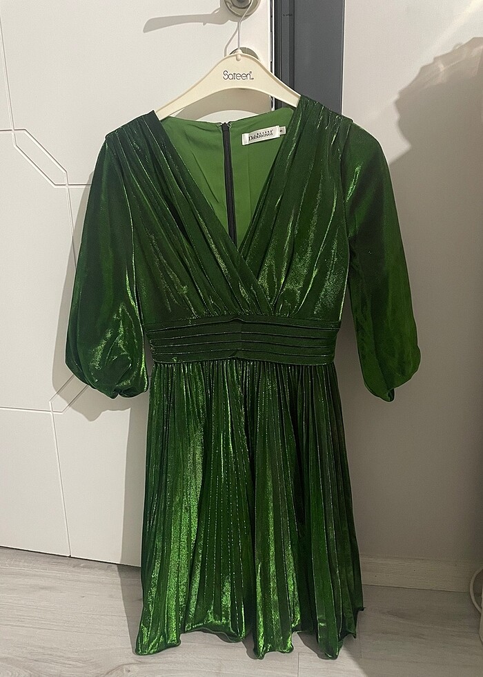 Çok güzel zümrüt yeşili elbise
