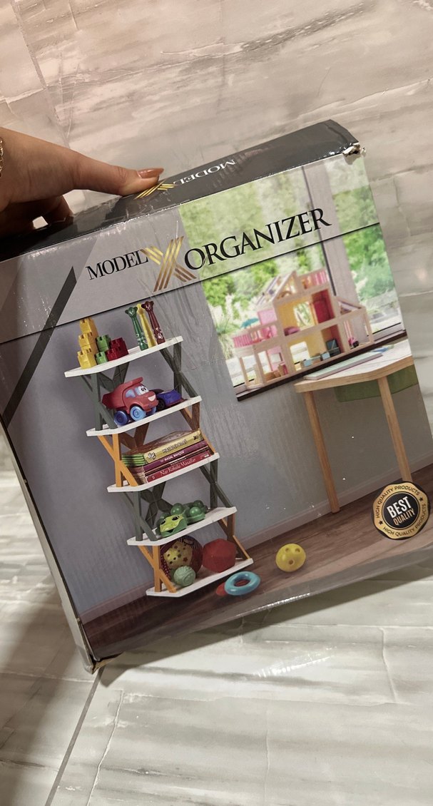 Çok katmanlı gri rafı, oyuncaklar, kitaplar ve aksesuarlar için bölmeler içerir. Çocuk eşyalarını düzenli tutmaya yardımcı olur.