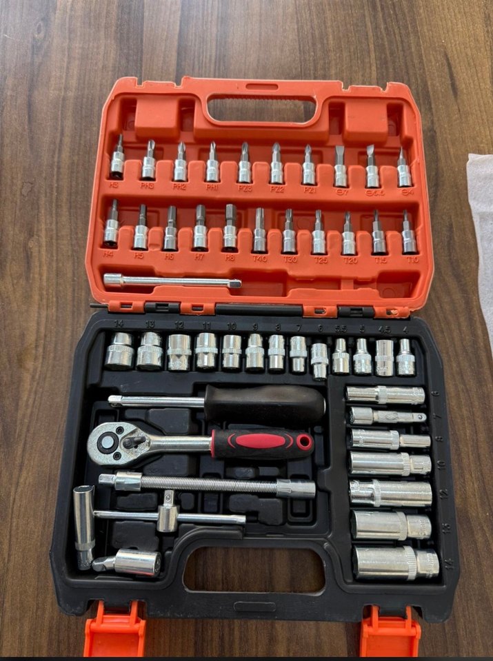Çeşitli tornavida uçları ve lokma anahtarları içeren çok parçalı set, dayanıklı ve taşınabilir kutuda. Rahat tutuşlu sap ve farklı boyutlar mevcut. ️
