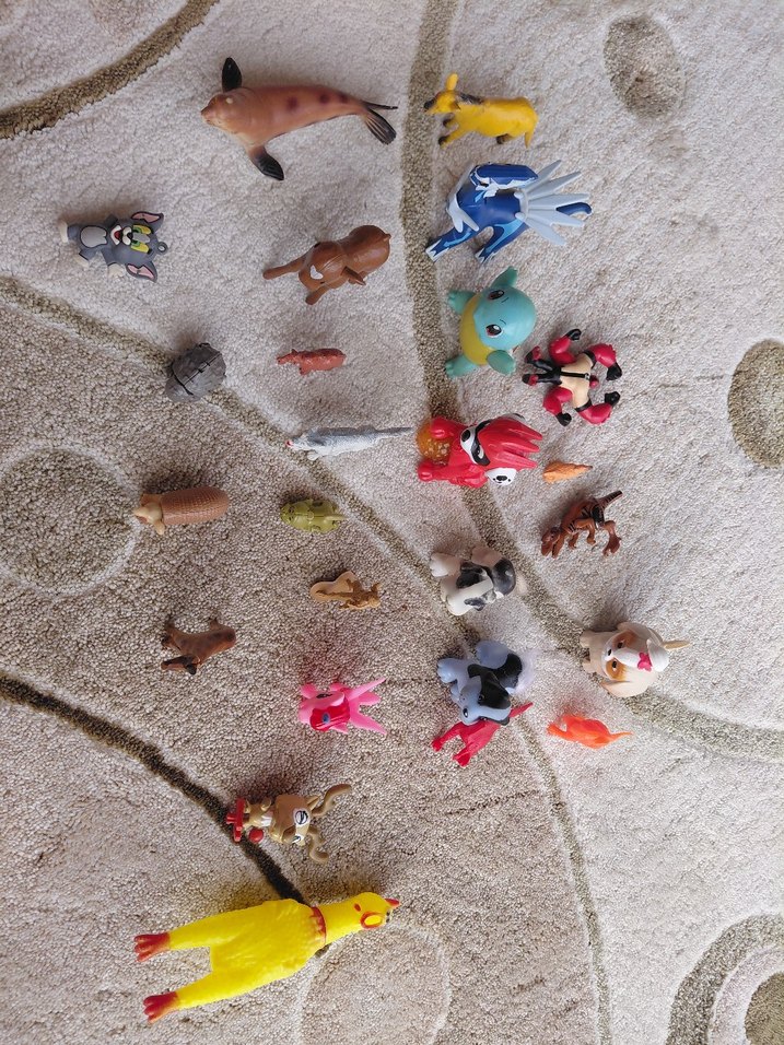 Çeşitli hayvan ve karakter tasarımlarından oluşan, hafif malzemeden yapılmış 24 parçalık çok renkli aksiyon figür seti.