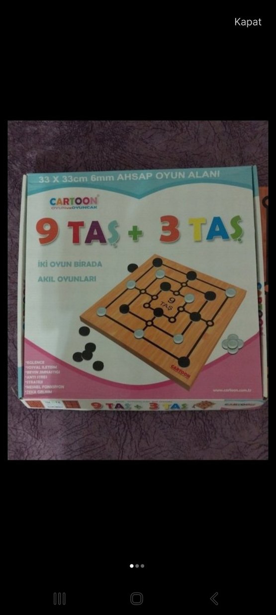 33x33 cm boyutunda çok renkli ahşap oyun alanı, 9 taş ve 3 taş ile zeka ve strateji geliştiren oyun. sifirdan farksiz