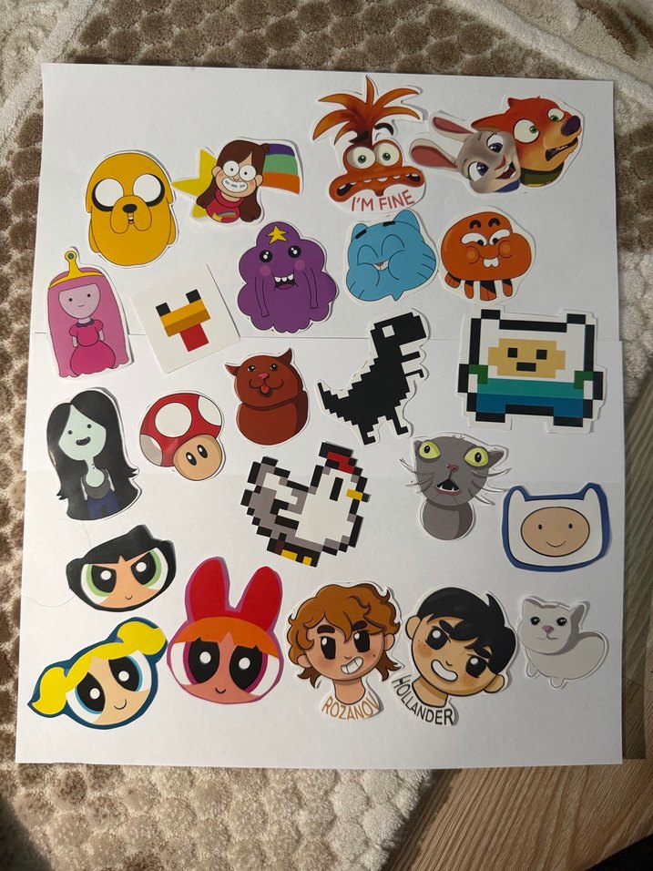 Farklı popüler çizgi film karakterlerinin piksel ve klasik tarzda çok renkli animasyon figürleri çıkartmaları. ♂️