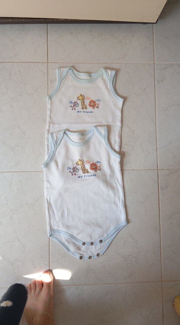 Pamuklu, çok renkli hayvan baskılı askısız, kolsuz bebek çıtçıtlı body. Kolay değiştirme için çıtçıt düğmeli.