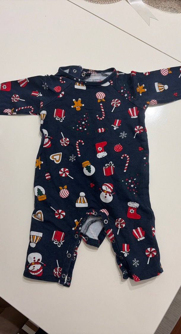 Uzun kollu, bisiklet yaka ve desenli renkli erkek bebek tulumu.