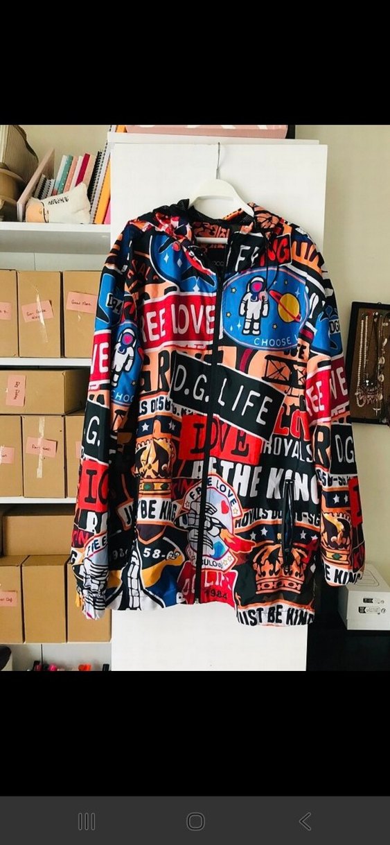 Çok Renkli Baskılı Kapüşonlu Uzun Ceket