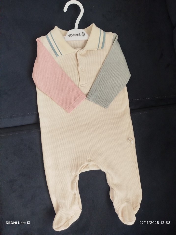 Pastel tonlarda, uzun kollu ve düğmeli yakalı bebek erkek yada kız tulumu. Yumuşak ve sıcak fleece kumaştan üretilmiştir.