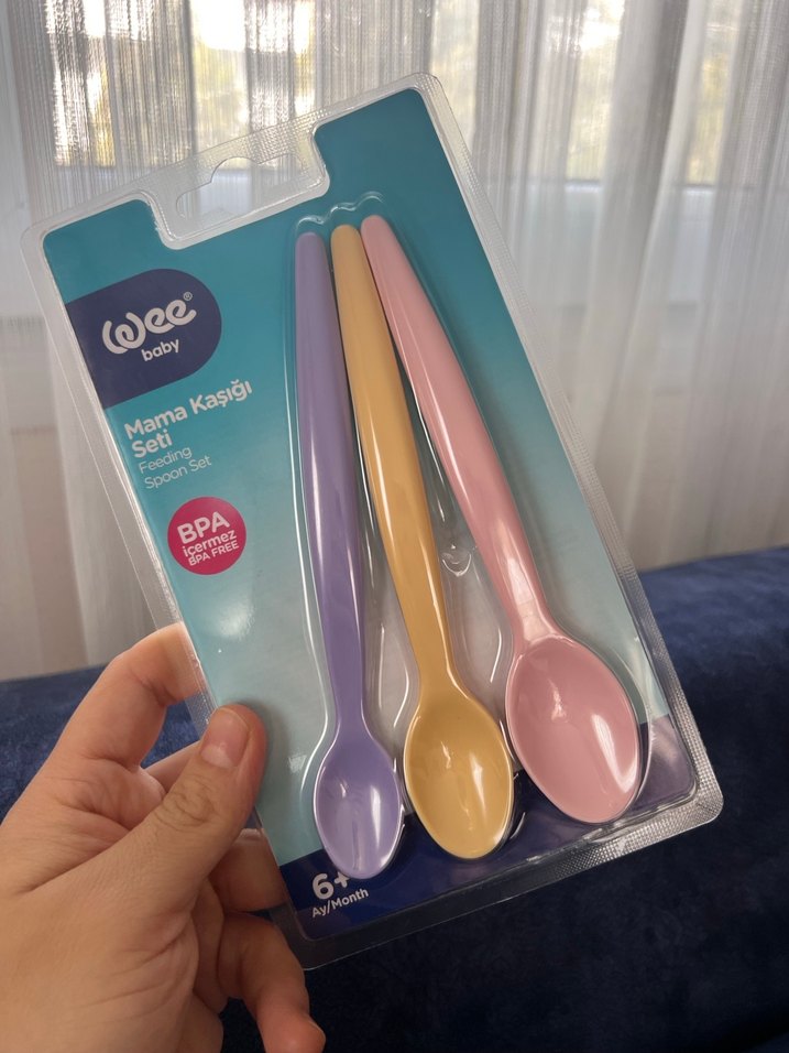 6 ay ve üzeri bebekler için BPA içermeyen, pastel tonlarda üçlü mama kaşığı seti. ️