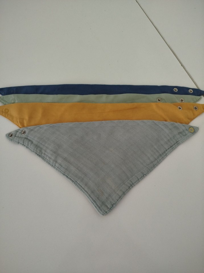 Gri, sarı, yeşil ve mavi renklerde çıtçıtlı çok renkli bebek önlükleri seti. Beslenme sırasında konfor için yumuşak kumaş. 4 lü fiyattır.. etiketler kesilmiştir..