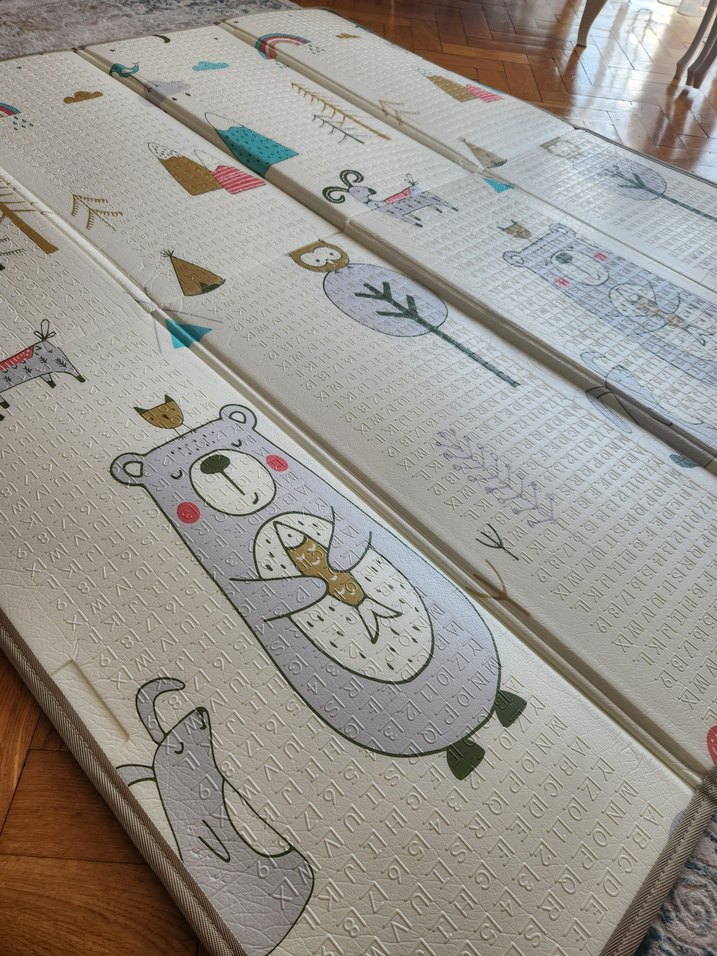 150×200 ölçülerinde 1-2 kez kullanıldı anneanne evi için almıştık kendi evimize getirmedik kullanmaya fırsat olmadı alındığı gibi duruyor fermuarlı çantasında hiç deformesi yok yumuşak eva gibi, silinebilir temizliği kolay kenarları biyeli Çok renkli, yumuşak sentetik kumaştan yapılmış, hayvan ve doğa desenli bebek oyun matı, konforlu bir yüzey sunar.