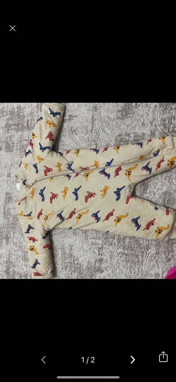 Yumuşak fleece kumaştan, çok renkli dinozor desenli bebek tulumu. Önden fermuarlı, rahat sokak tarzı kullanım için uygundur.