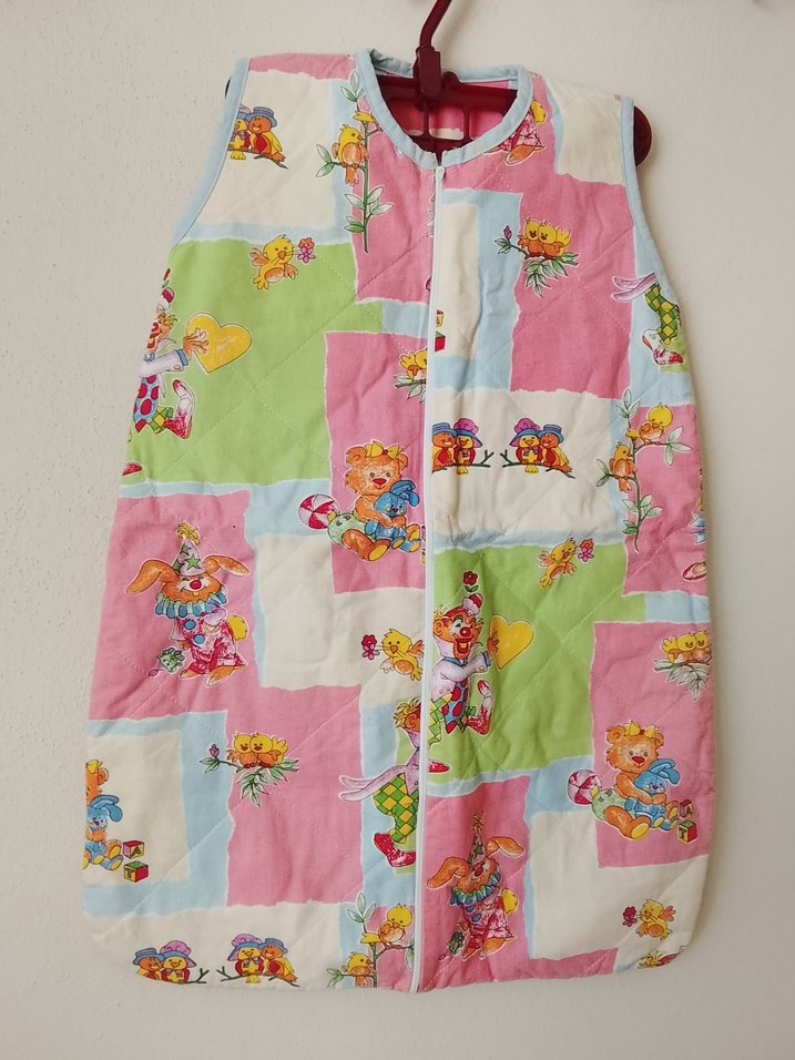 Pastel renklerde, yumuşak ve sıcak kumaştan yapılmış bebek uyku tulumu. Önden fermuarlı, çocuk desenleriyle süslenmiş.