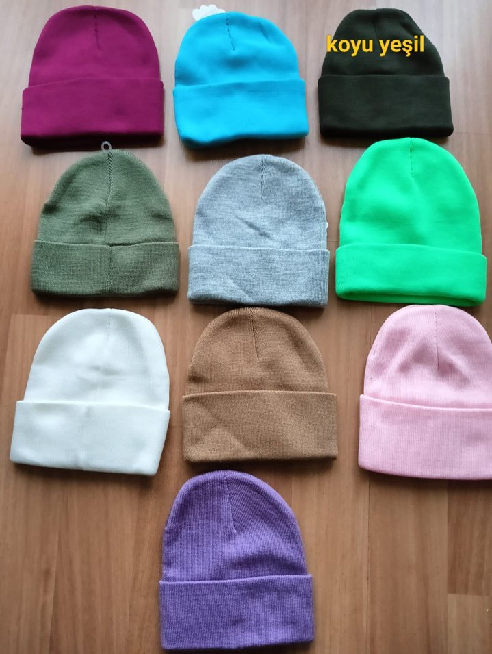 koyu yeşil dahil çok renkli bere koleksiyonu, rahat ve sıcak tutar.