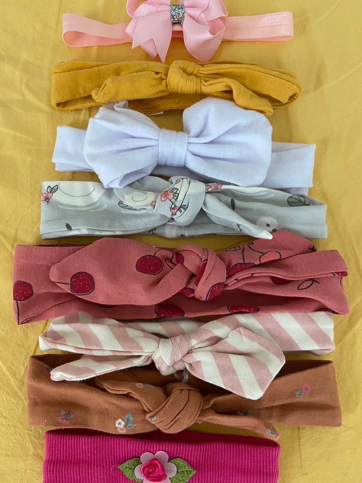 Bohem tarzda, pastel tonlarda bağlamalı ve fiyonk detaylı çocuk saç bantları, retro ve hippie tarzına uygun.