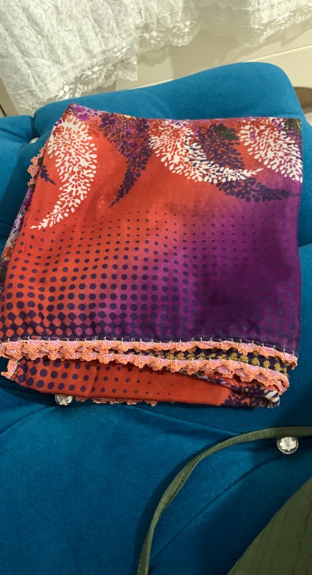 Kadınlar için çok renkli, koyu tonlarda bohem ve retro tarzda, drapeli tekstil şal. Her kombine özgünlük katar.