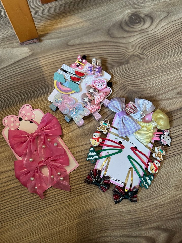 Pastel renklerde, baskılı desenli ve kurdele detaylı çok renkli bohem kız çocuk saç tokaları koleksiyonu.