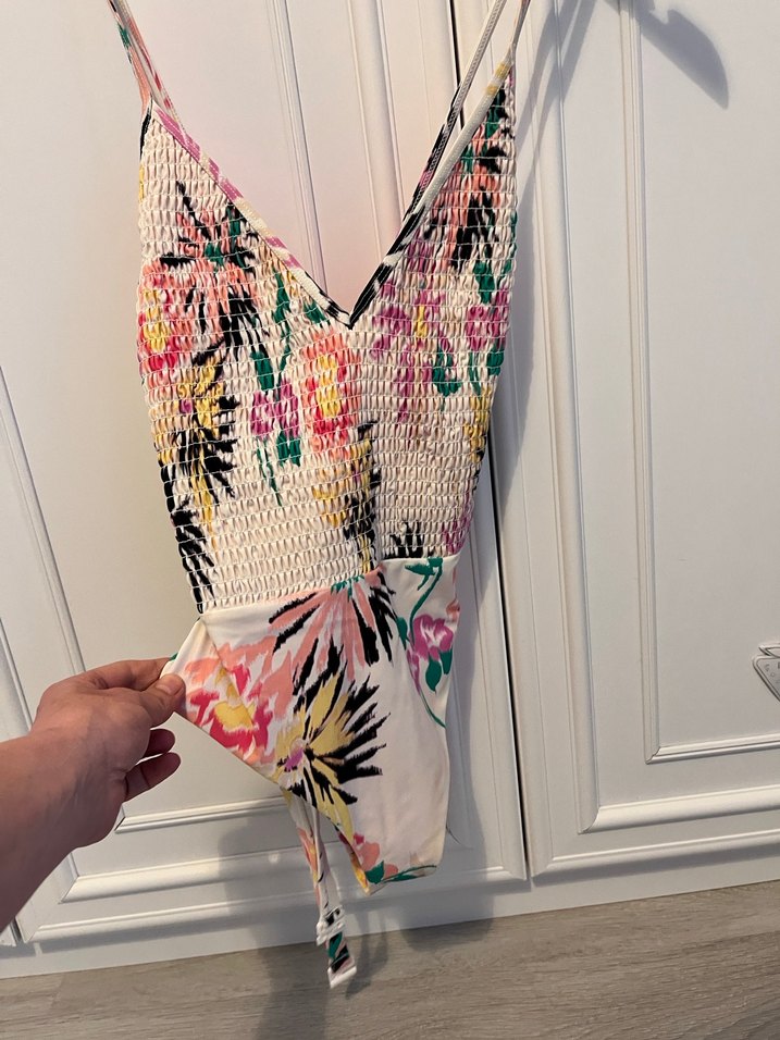 İnce askılı ve çok renkli bağlama desenli, bohem tarzda kadın mayo. Plaj için uygun, vücuda oturan kesim. Ürün Amerika’dan alındı. Etiketi üzerinde. Önden kemer detaylı,göğüs dekolteli,ayarlanabilir askı. #mayo #bralet #kadıngiyim