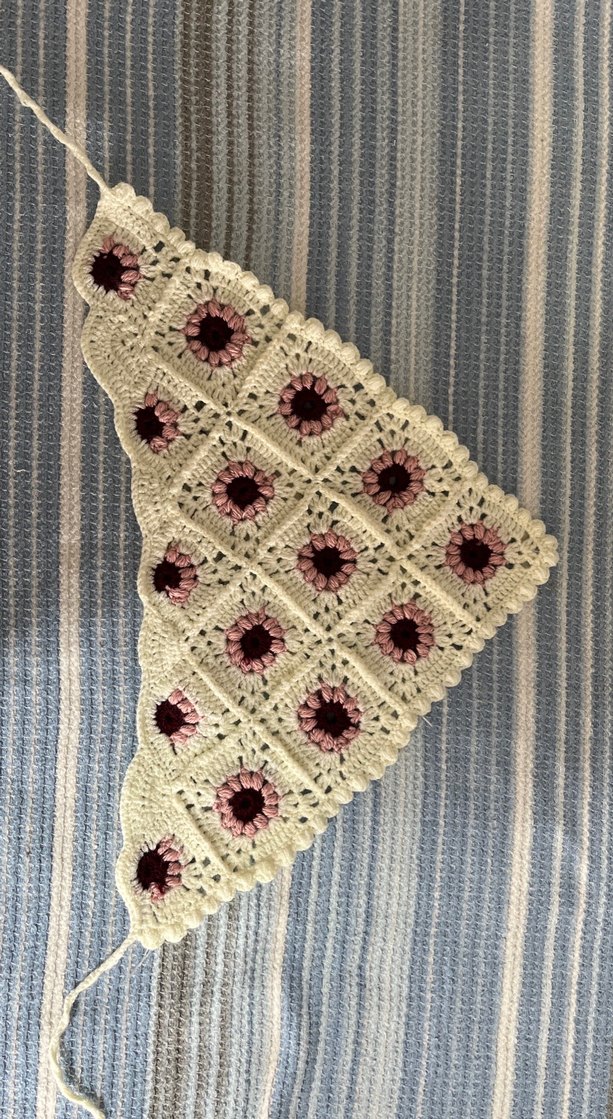 Çok renkli örme saç aksesuarı, dantel detayları ve hafif renk tonlarıyla bohem, rahat bir stile sahiptir. Retro ve hippie görünümü için uygundur.