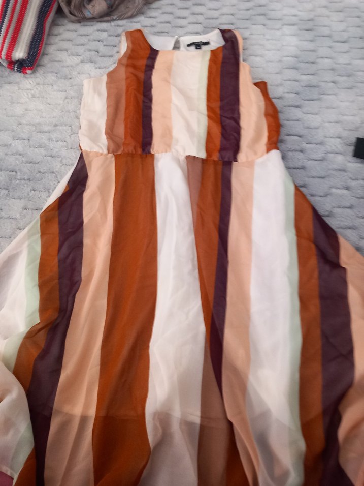 Kolsuz, drapeli, straplez yakalı bu bohem elbise bol kesimdir. Hafif sentetik kumaştan çok renkli tie-dye desene sahiptir, günlük kullanıma uygundur.
