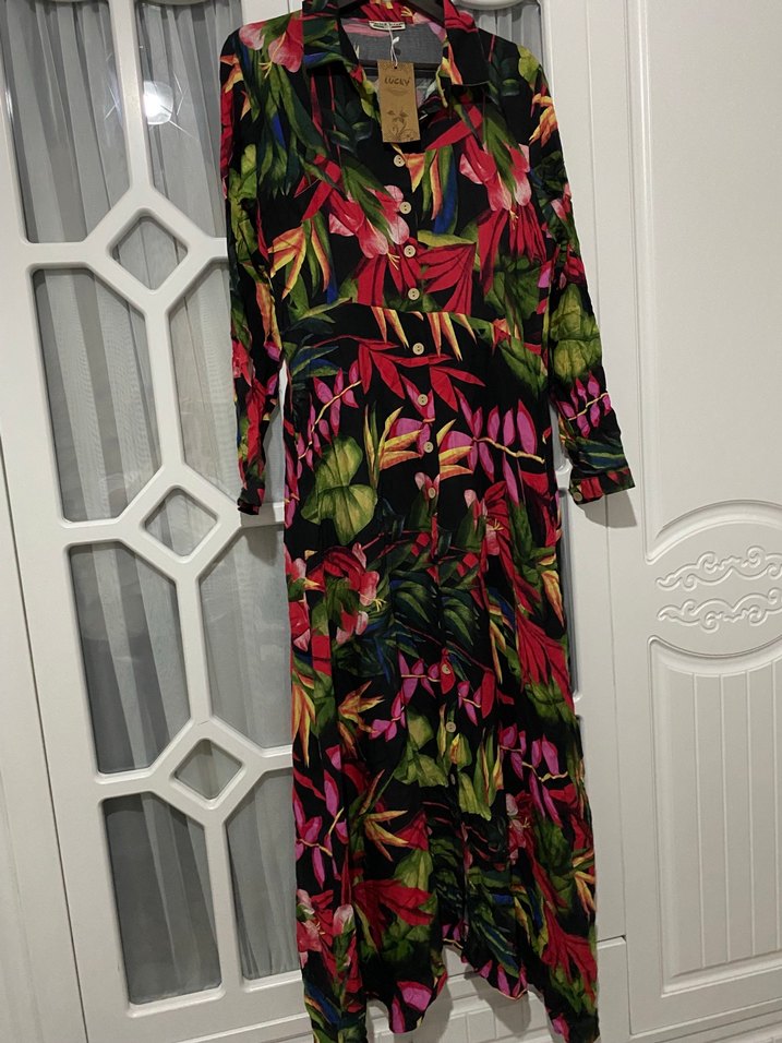 Çok Renkli Bohem Uzun Elbise