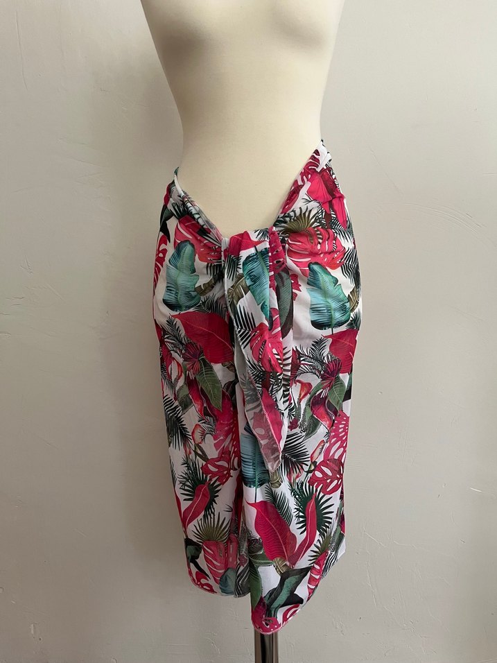 Renkli, bohem tarzda, salaş kesim ve uzun boyda, drapeli, kolsuz pareo. Canlı batik ve tropikal desenlerle süslenmiş, açık hava etkinliklerine uygun.