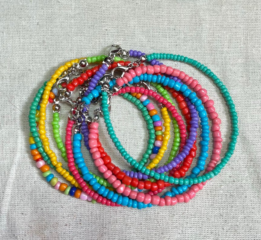 Rengarenk cıvıl cıvıl boncuk bileklikler.