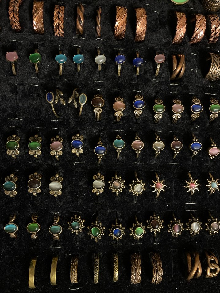 renkli boncuklu ve desenli bohem tarzda kadın yüzükleri.