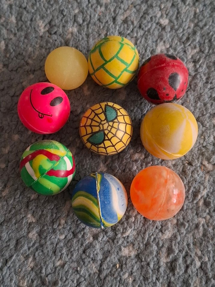 9 adet minik sıçrayan toplar hepsi bir gönderilecek foyat toplu fiyattır sorunsuz saglam Farklı desen ve tasarımlara sahip çok renkli sıçrayan toplar koleksiyonu.
