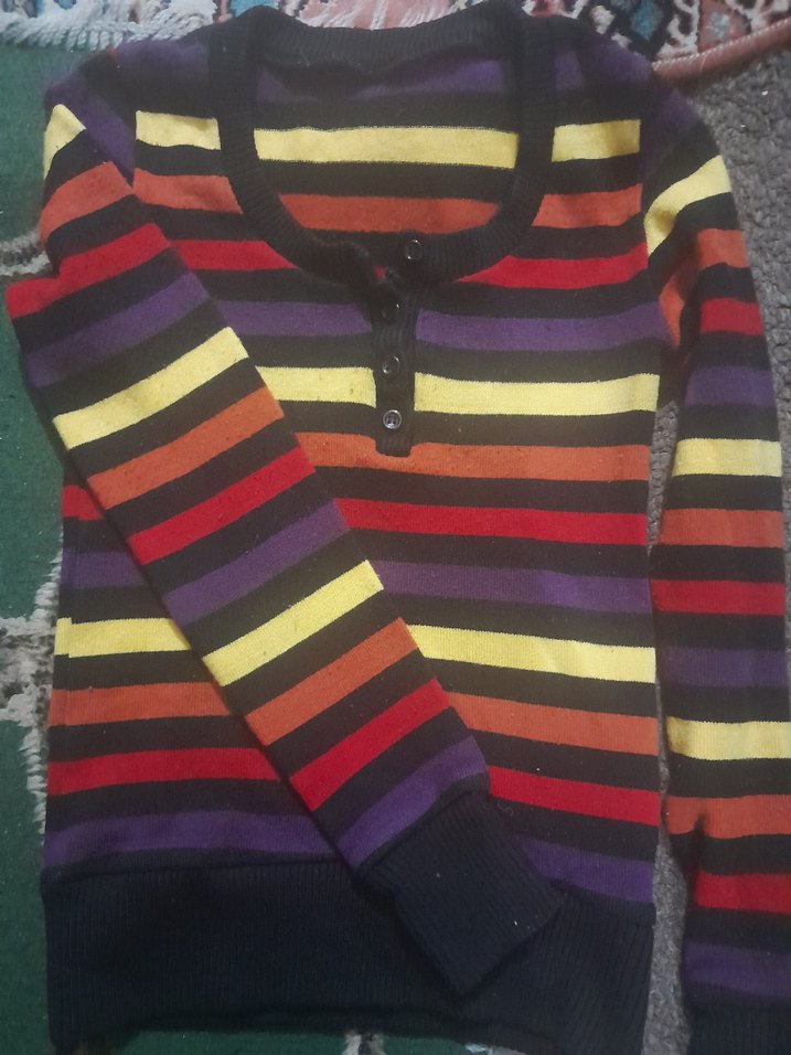 Çok Renkli Çizgili Kadın Triko Kazak