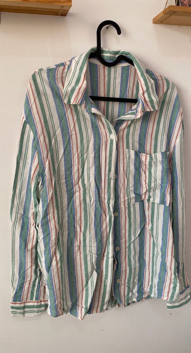 Çok Renkli Çizgili Keten Gömlek