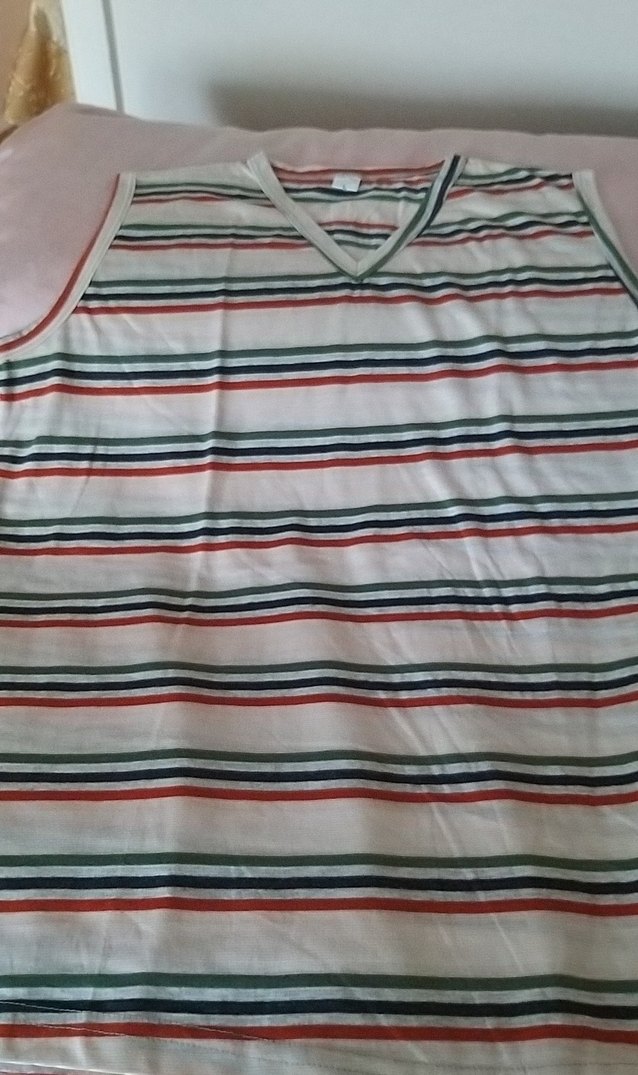 Çok renkli çizgili desenli, yumuşak kumaştan yapılmış penye buluz göğüs arası 54 boy 68