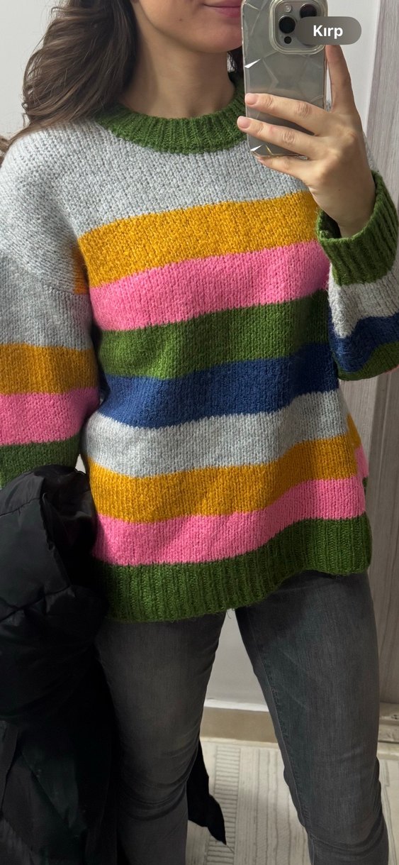 Çok Renkli Çizgili Örgü Kadın Kazak