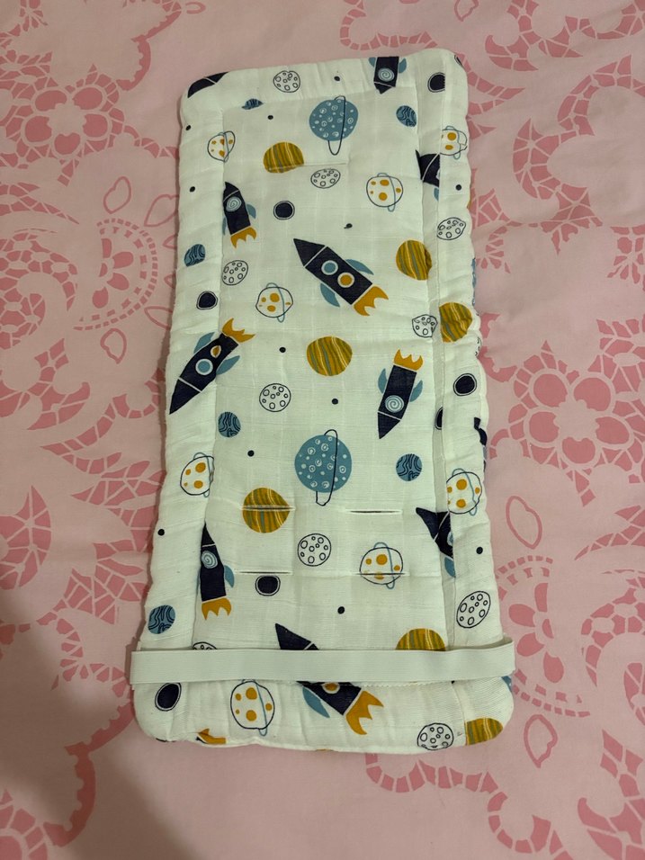 Yumuşak sentetik kumaştan yapılmış, çok renkli pastel uzay temalı baskılı çocuk uyku aksesuarı. Hafif ve rahattır. Puset minderi sorunsuzz