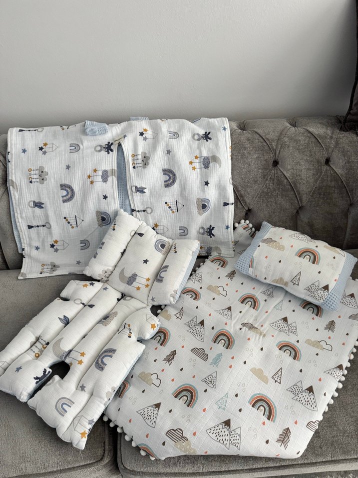 İlkimbebe satıcısından alındı alt açma ve yastığı hiç kullanılmadı sadece yıkandı ve ütülendi puset takımı sayılı kullanıldı artık puset kullanmadığımız için satıyorum ürünlerin arka yüzü bebek mavisi çift yönlü kullanılabiliyor kendi sitesinde iki set toplamı 3500₺