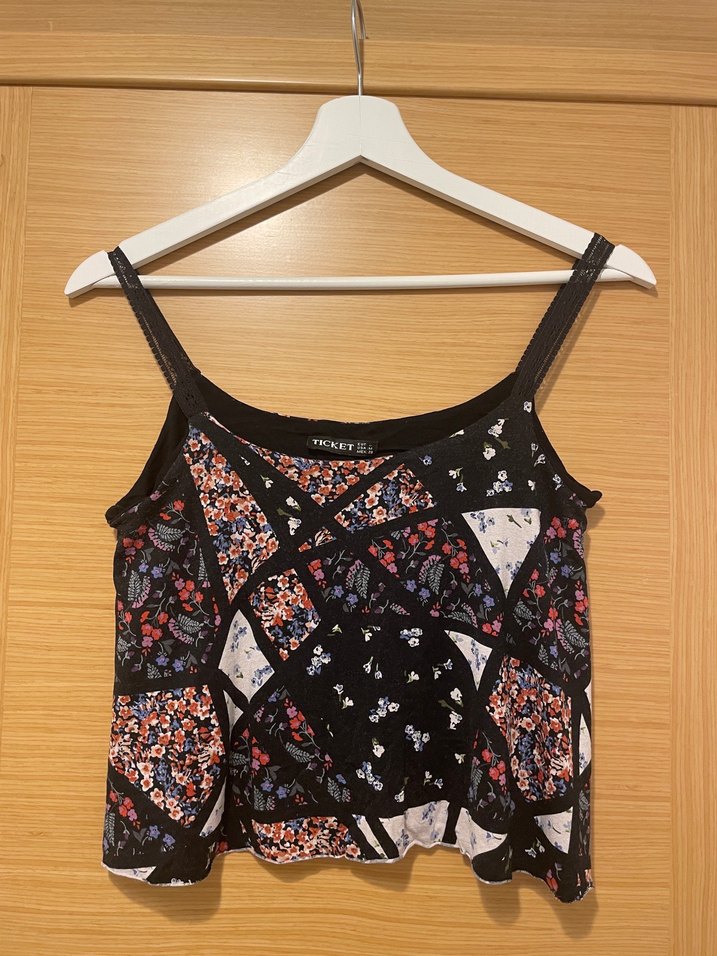 Dantelli detaylara sahip, çok renkli koyu tonlu tie-dye desenli, straplez yakalı ve fitted mini askılı üst. Günlük kullanıma uygun bohem tarzda.
