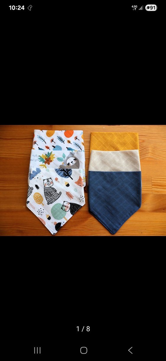 Oyunlu hayvan desenli ve sarı, bej, mavi renk bloklu altı adet yumuşak bebek önlüğü seti. Günlük kullanıma uygundur. %100 Pamuklu müslin kumaştır.