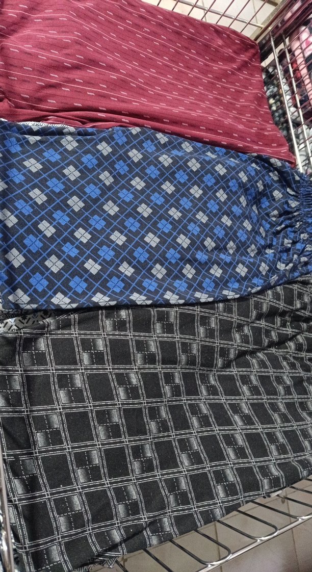 Koyu renkli, desenli ve pileli detaylara sahip bol kesim erkek pijama altı, rahat ve trend sokak stili sunar. bacak kısmı lastikli düz olan da var ikisinin de fiyatı aynı tekli fiyat istenilen renk beden gnderilir