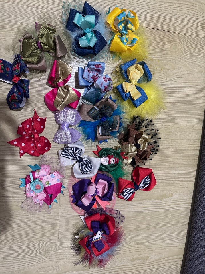 Farklı stillerde çok renkli desenli fiyonk detaylı çocuk tokaları, pop kültürünü seven modaya uygun çocuklar için ideal. —-toplu fiyattır