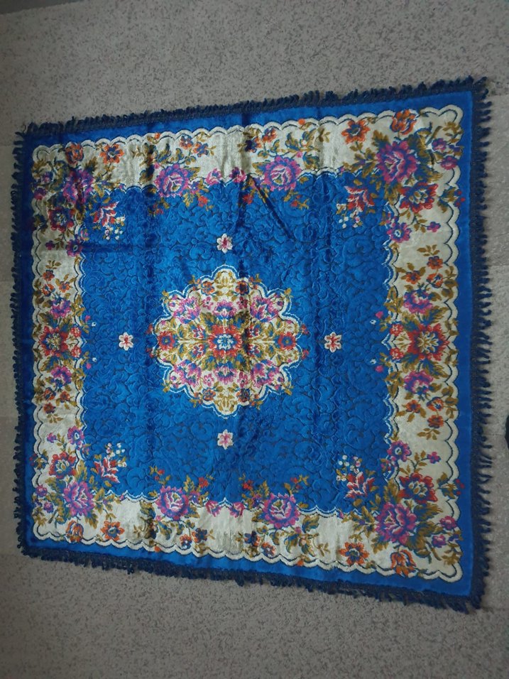 Canlı mavi zemin ve ayrıntılı çiçek desenleriyle çok renkli, geleneksel tarzda bir halı. Her mekâna enerji katar. 123x123cm olculerindedir.