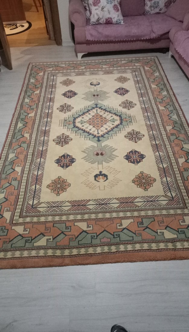 Çok renkli, açık tonlarda desenli geleneksel halı. Geometrik motifler ve süslü kenarlık içerir. Her mekana klasik bir dokunuş katar. boy 3 metre en 188